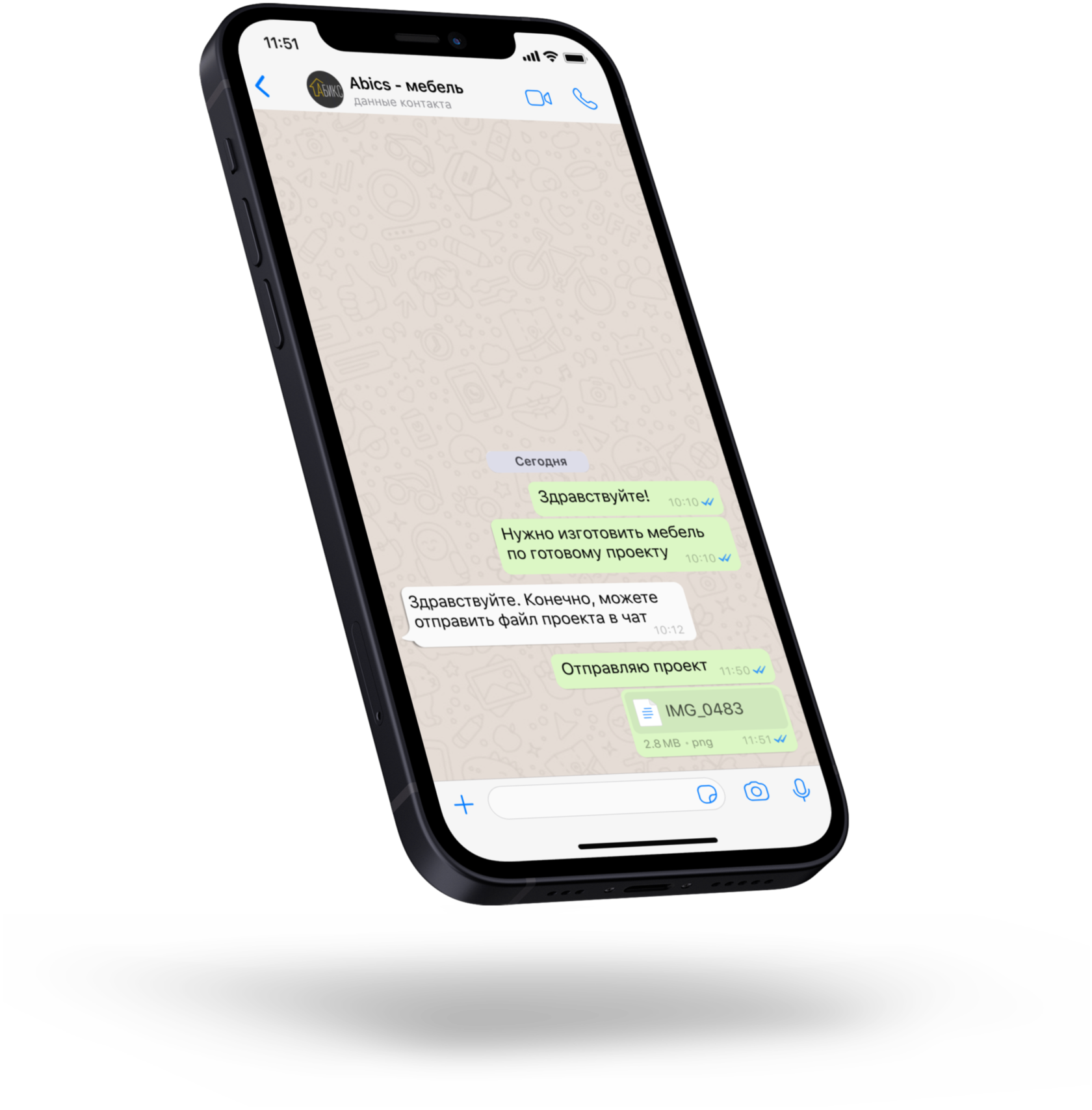 Пришлите нам размеры на WhatsApp или Telegram Если у вас уже есть проект - пришлите нам, мы его посчитаем
